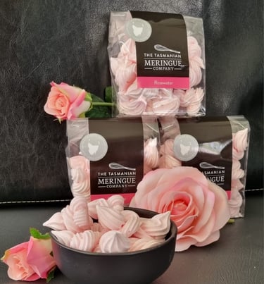 Introducing our delicious Rose Water meringues, available in convenient 50 gram packets! These light and airy treats are perfect for satisfying your sweet tooth on-the-go or for adding a touch of elegance to your next dessert spread. Try them today and experience the delicate floral flavor of our Rose Water meringues.